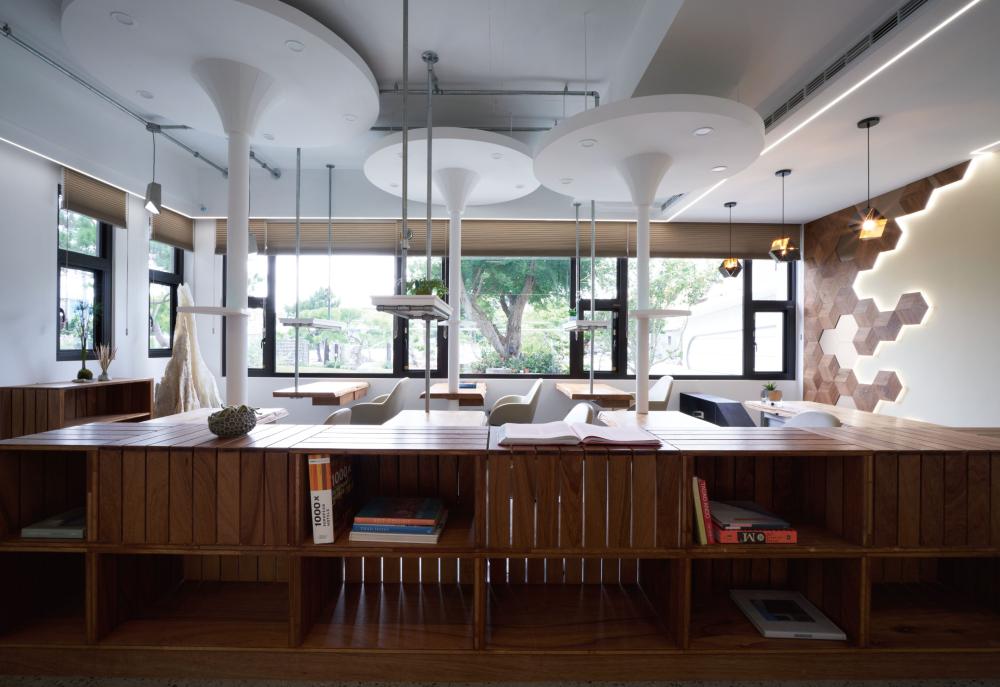 設計團隊將環保理念付諸實踐,設計出一個環保舒適兼具美感的辦公室,讓客戶盡情感受木材的質感及享受樹蔭的庇護。
